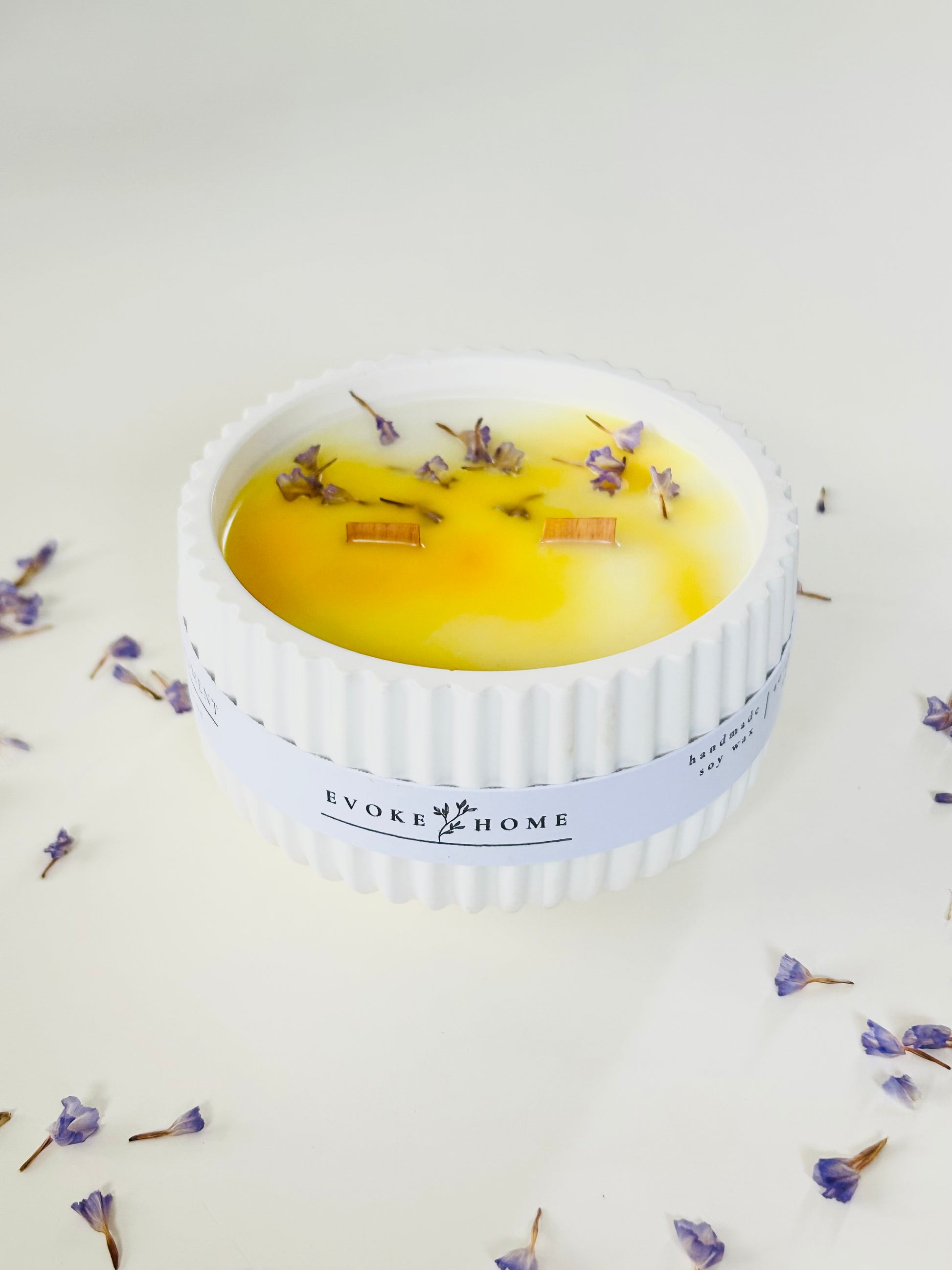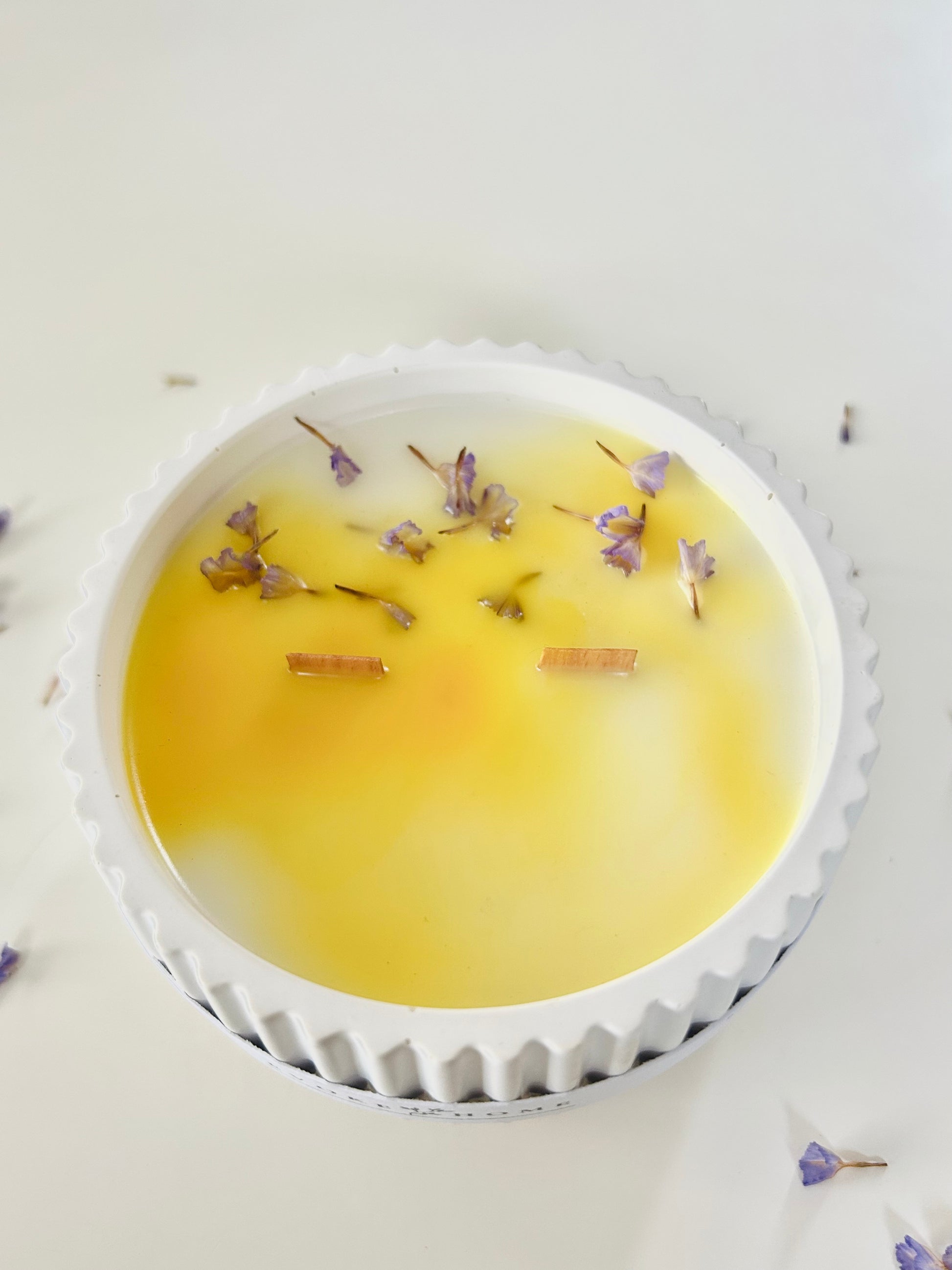 Nuestras velas están elaboradas con cera de soja, una alternativa ecológica y biodegradable. La cera de soja se quema de manera más limpia y uniforme, sin producir hollín ni toxinas dañinas.