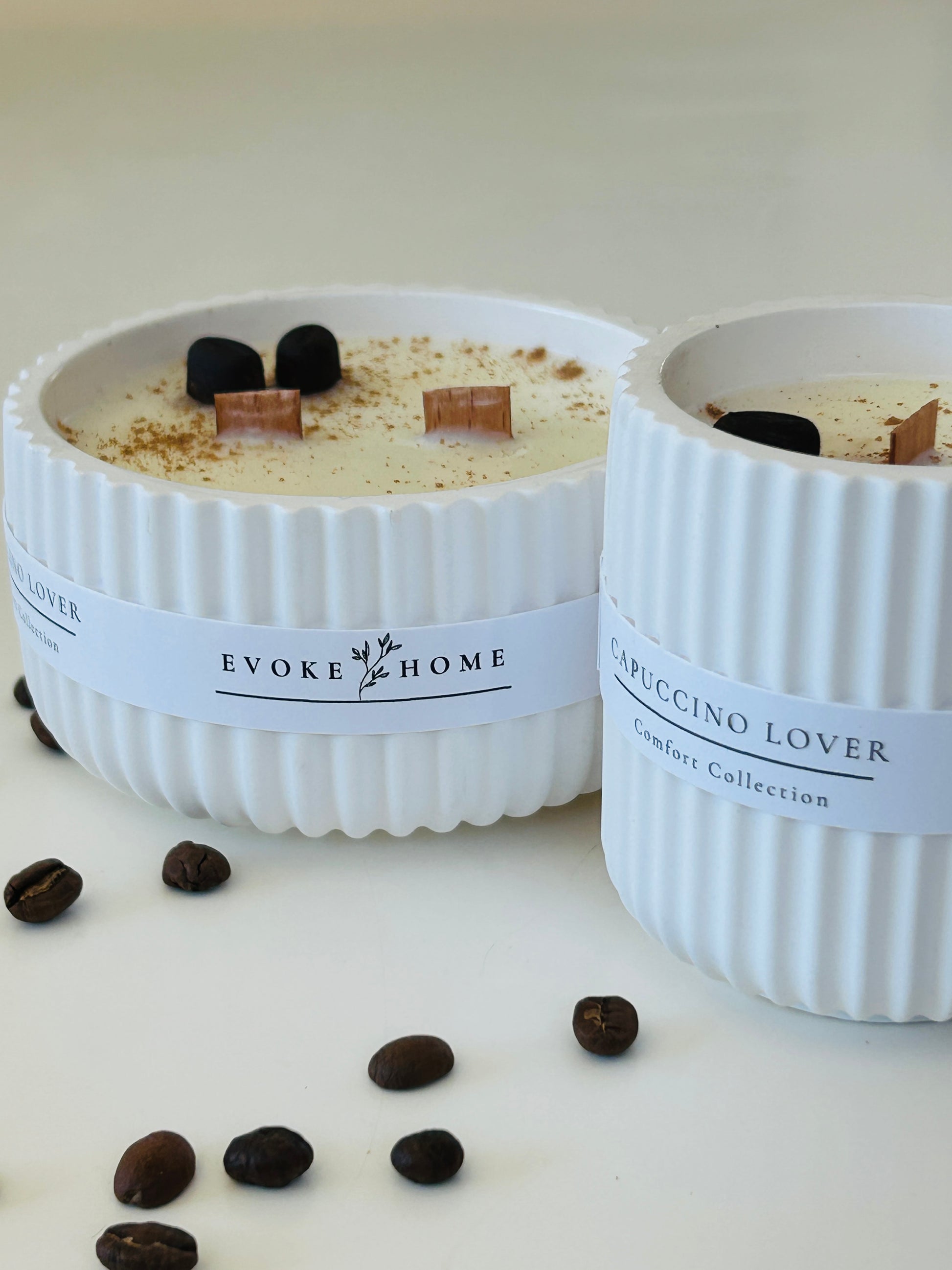 Cada vela Capuccino Lover es vertida a mano para crear una pieza de indulgencia; su diseño minimalista y elegante complementa tu momento de confort.