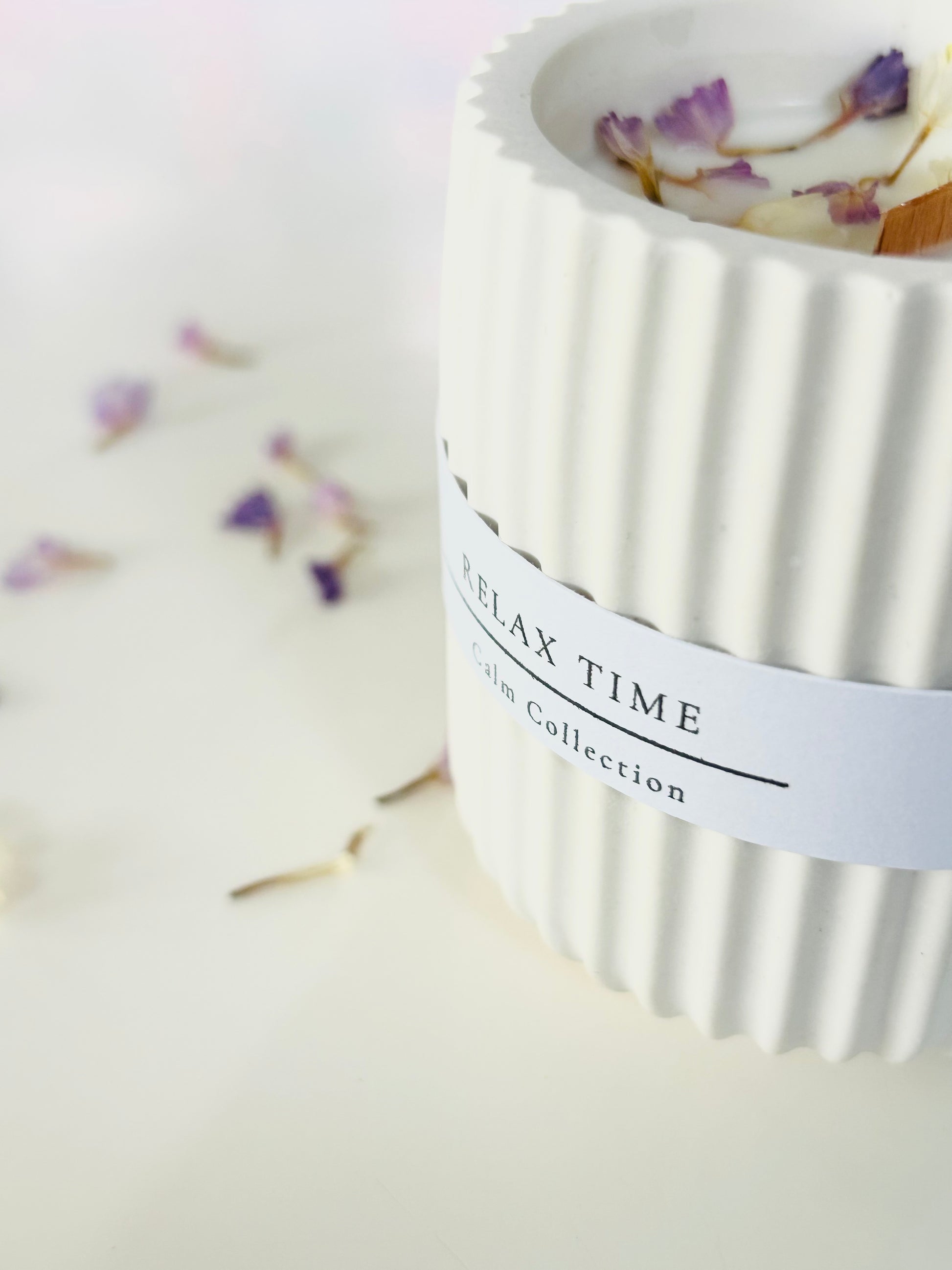 Cada vela Relax Time es vertida a mano en un molde de resina ecológica, creando una pieza única y sostenible. El diseño elegante y minimalista complementa a la perfección la experiencia olfativa, añadiendo un toque de sofisticación a cualquier espacio.